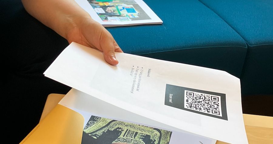 Gruppearbeid om utviklingen av funksjonshemmedes rettigheter. Bilder er kombinert med QR-koder som går til lyd
