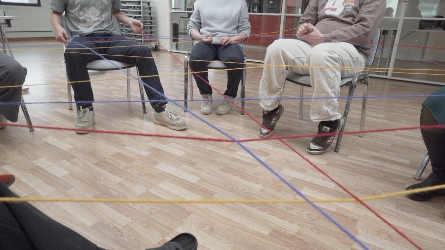 After the pair/group has explained their situation, they hold on to the end of the thread and throw the ball of yarn to one of the societal roles that have contributed to solving the problem. Now it is this role’s turn to tell how they helped the pair/group. Then the societal role lobs the ball of yarn back to the pair/group, and they then throw it to another societal role which talks about how they helped.